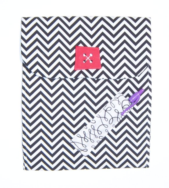 want like Go Bag, PJ’s, Picnic, your pet’s name, etc.Shown using Riley Blake’s fun Peak Hour & Chevron fabrics & buttons.