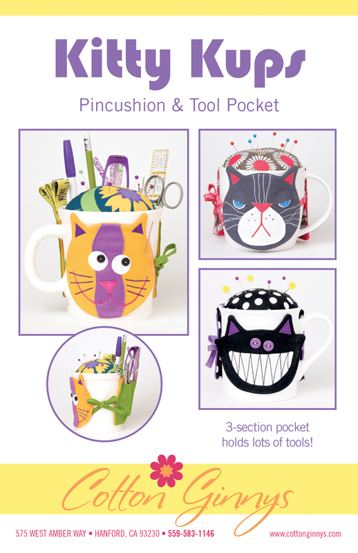 These cups are not just cute, they are handy! Your most important tools and pincushion at your fingertips and a handle to make it easy to carry back and forth from your sewing machine to the ironing board or work station.