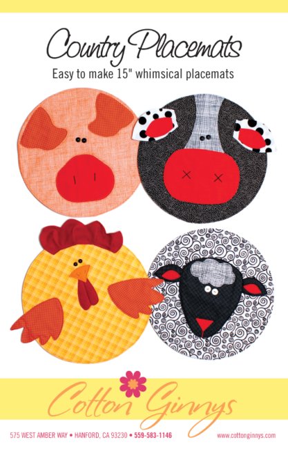 These charming 15” placemats include a cow, pig, chicken and sheep.
