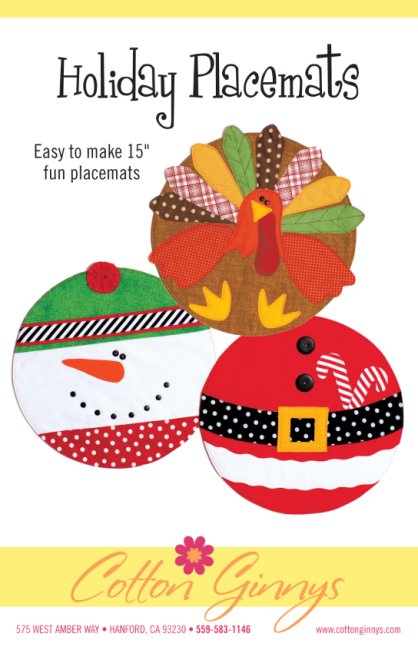These festive and easy to make 15” placemats include a Santa, snowman & turkey.